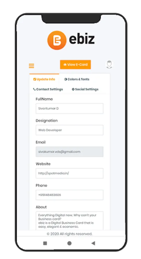 ebiz is a Digital Business Card that is easy, elegant & economic.
