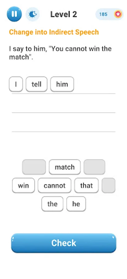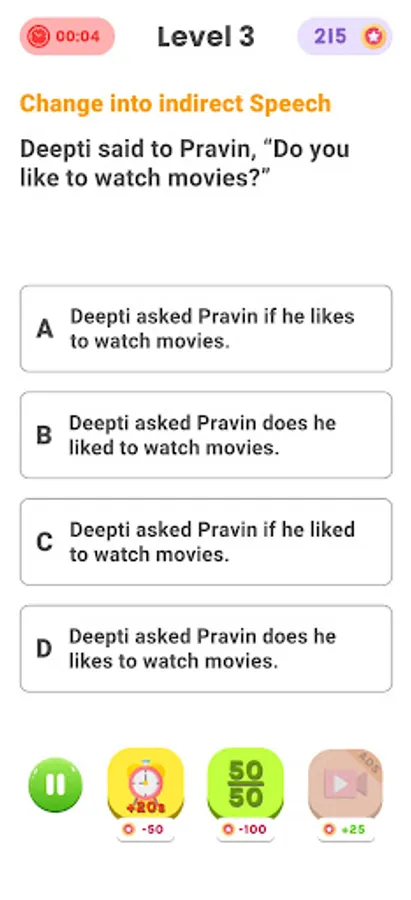 Learn Direct and Indirect Speech. There are given two ways to practice, scramble and quiz.
