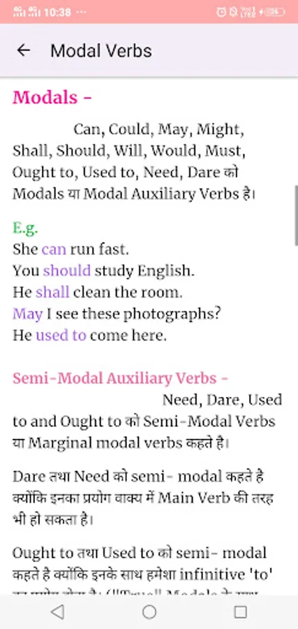 This app helps you to learn modal Auxiliary Verbs, to improve your English, and to crack your examinations.