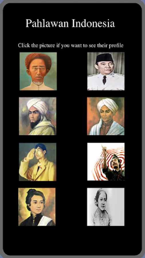 My APP tells you more about the legends of Indonesia. For the people who wants to know more about Indonesia they can read this APP. This app will show you the profile of each Indonesian Heroes.