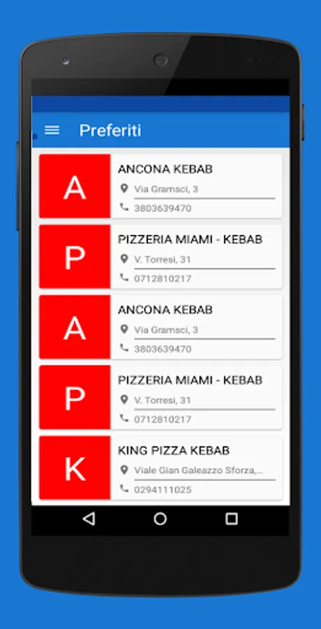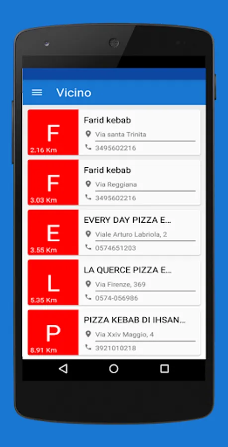 This application is for those who want to have the addresses of existing kebab in every Italian city. The app provides the phone number and address of each kebab.