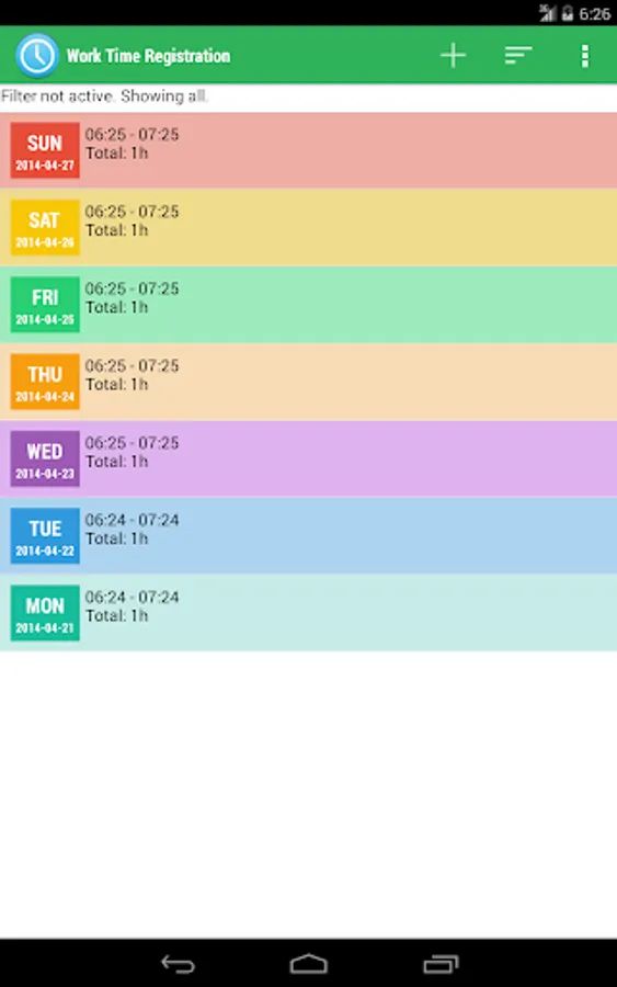 This application will take care of your work time registration. Save the times you have worked and check them in a nice looking summary. Filter your work times on start- and end date and see how many hours you have worked that period. Export them in a easy-printable HTML format!