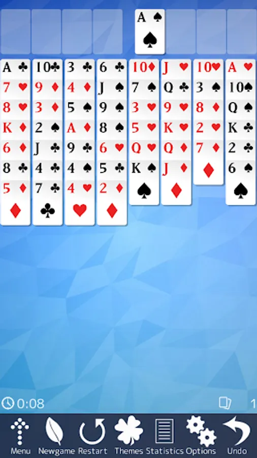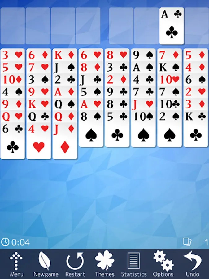The purpose is sent all cards to the space called "home cell". Card can be overlapped the red and black alternately. You can move only one card at a time. On the "free cell", you can put anything. When you failed, it's able to undo anytime.