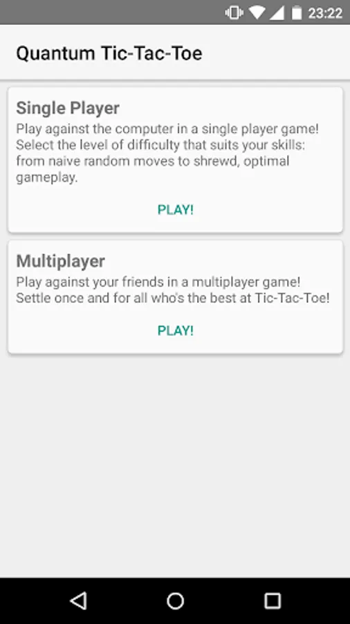 The first Android app in the Google Play Store implementing an optimal AI for the game of Quantum Tic-Tac-Toe.
