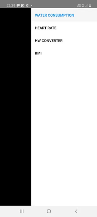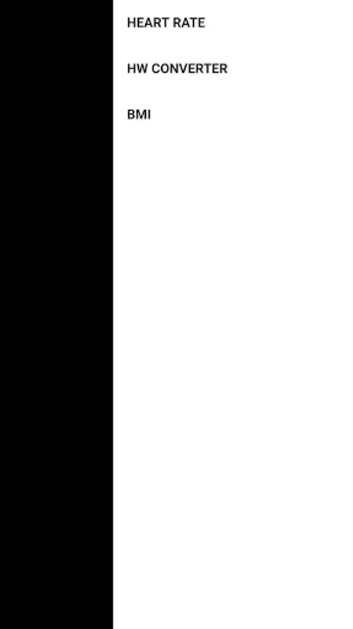 it has the following contents BMI, WATER CONSUMPTION , HW (HEGHT WEIGHT ) CONVERTER, HERT RATE CALCULATER
