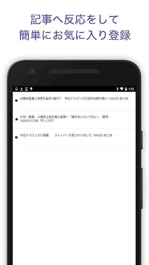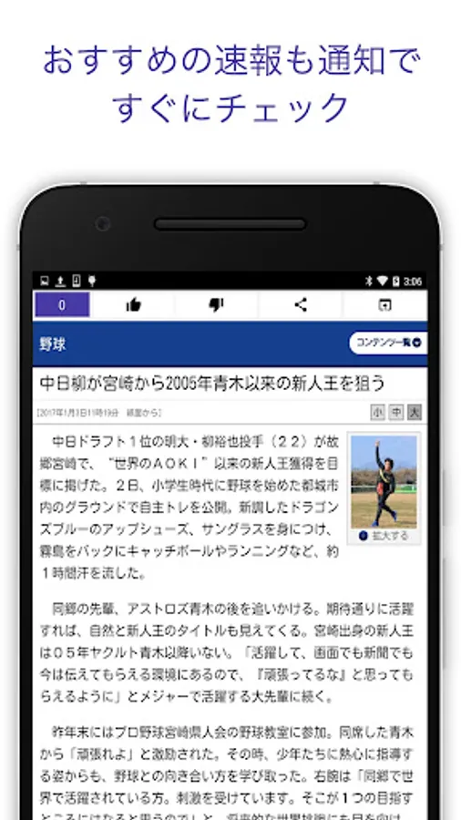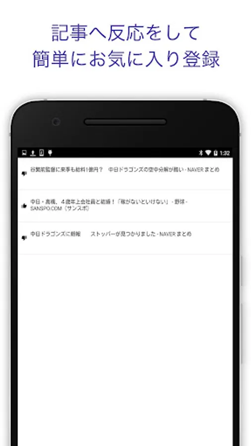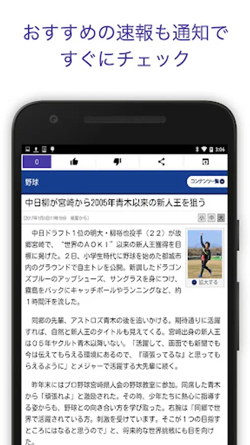 - 「ニュース」ではドラゴンズの最新ニュースが得られます。