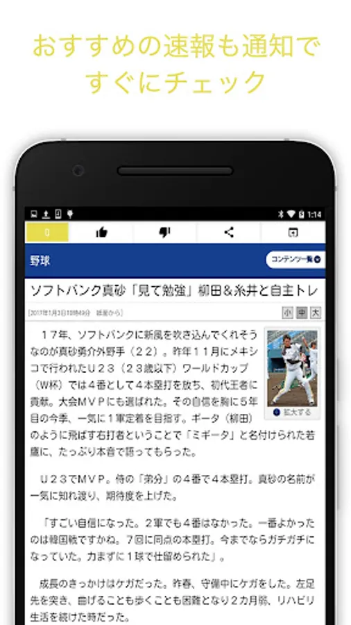 プロ野球の試合30分前通知や、朝昼晩の注目のニュース通知を受け取ることもできます。