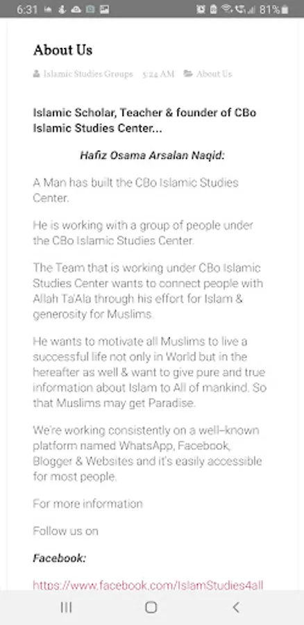 The Team that is working under CBo Islamic Studies Center wants to connect people with Allah Ta'Ala through his effort for Islam & generosity for Muslims.