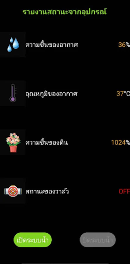Used to check the temperature status of the air. Soil moisture Air humidity You can turn on and off the button to water the plants, even if they are in different places with the plants.