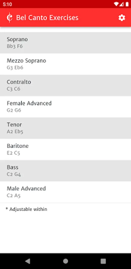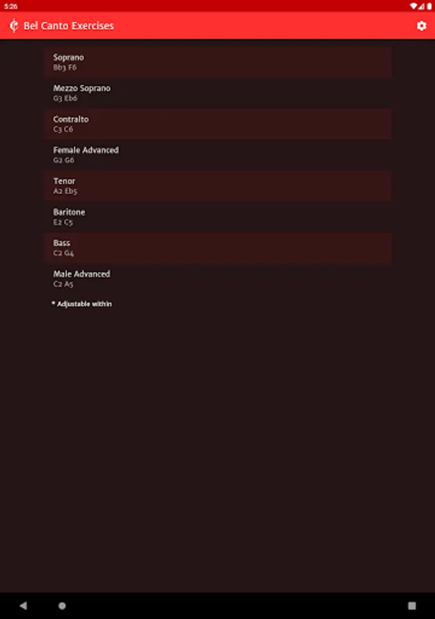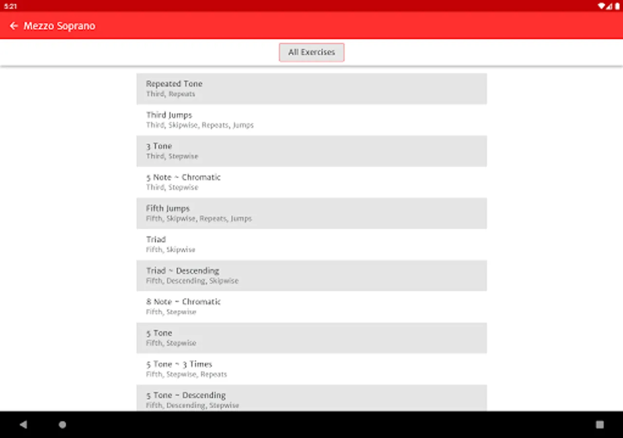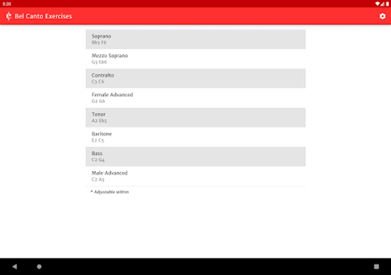 Bel Canto Exercises is a voice training tool for singers with various vocal exercises. It can also be used for ear training and practicing solfege, chromatic solfege.