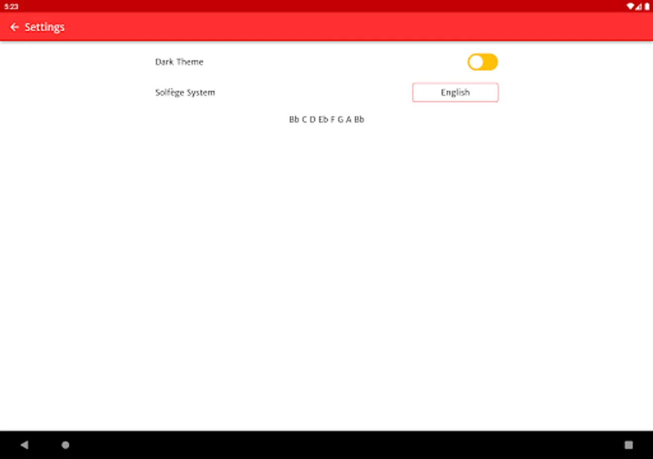 Solfege system choices are, English, Italian and Chromatic Solfege.