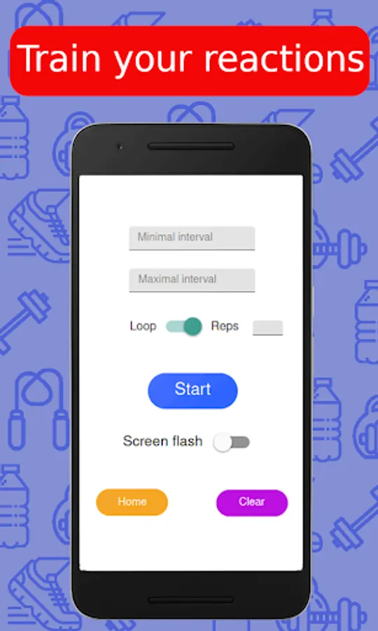 The Reaction timer mode allows you to set a time interval in which the app will randomly signalise. In this Pro version you can choose whether to let the timer run in loop or set the count of reps you want to do. The Reaction timer is suitable for: