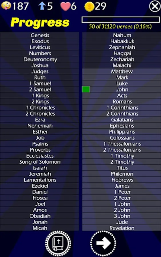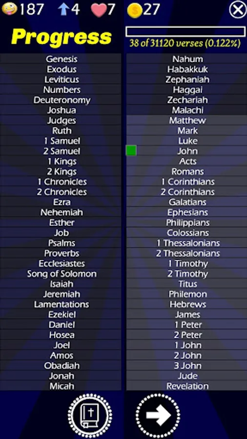 Challenge your way through the Bible and use power-ups to increase your scripture memory.