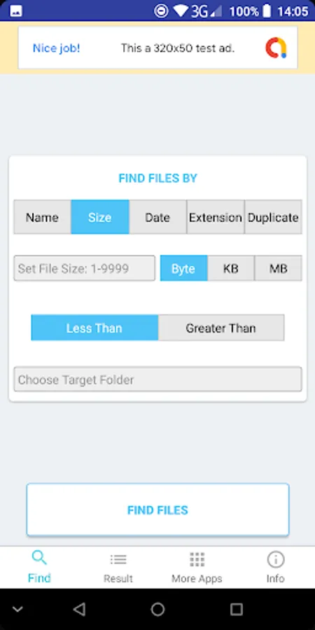 Search By Size supports search for files with size equal or greater (less) than a given size.