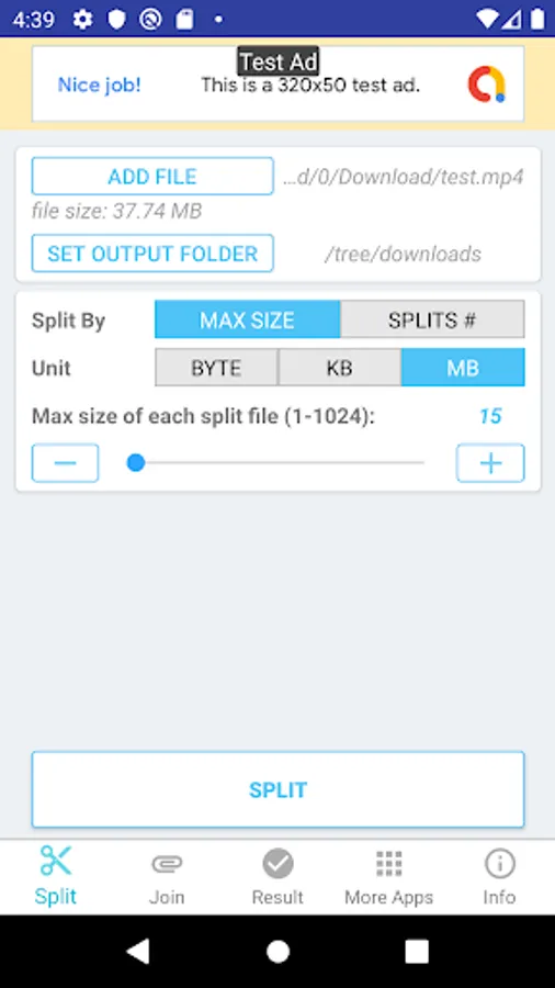 2. File can be split by max size of piece (1-1024 Byte / KB / MB), or by number of pieces (splits) - between 2 and 999.