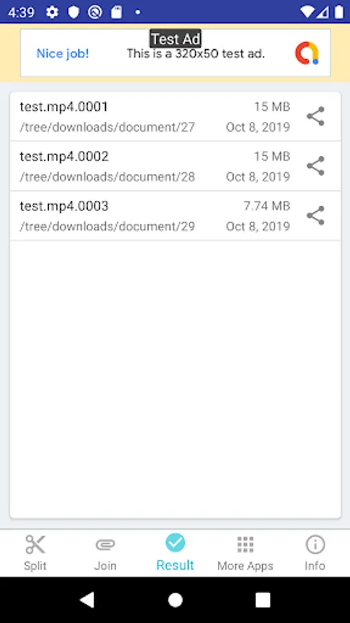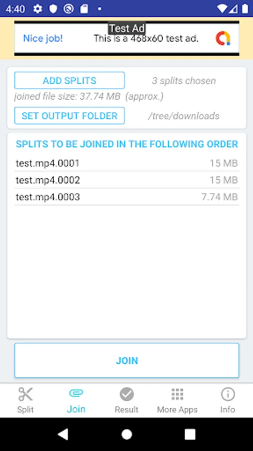 3. Join splits (previously split files).
