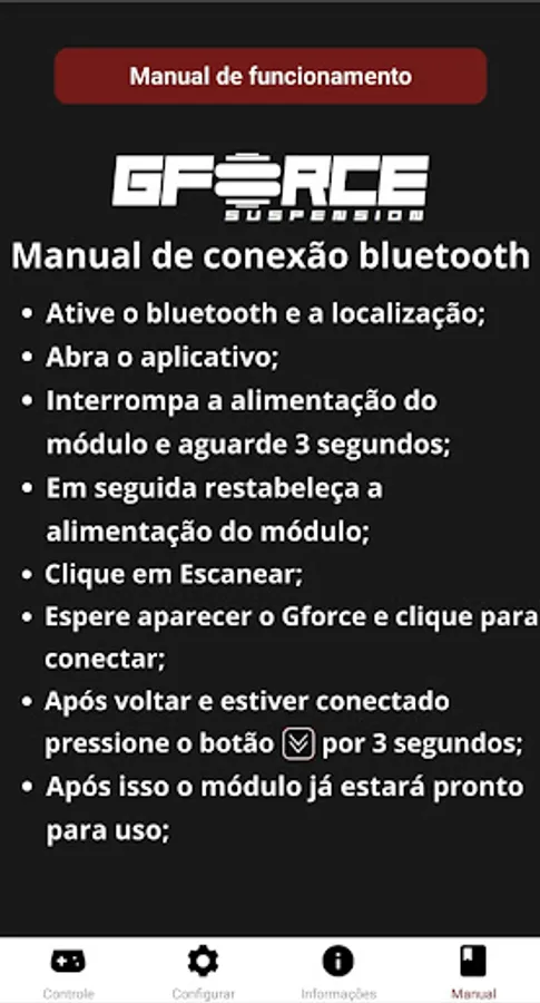 Used only for the GFORCE Suspension suspension module, it contains the manufacturer's information and manual for connecting the module to the application.
