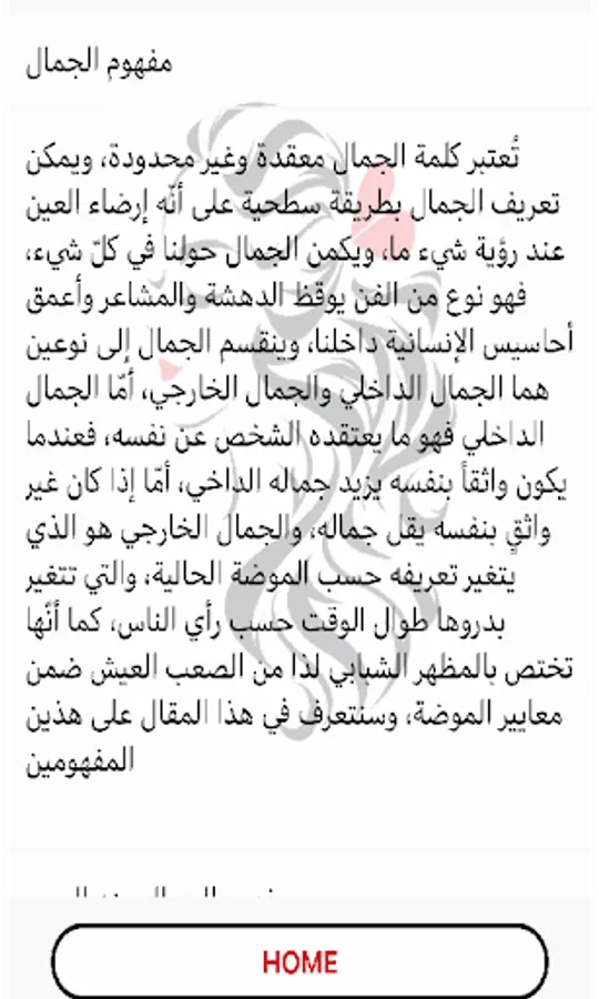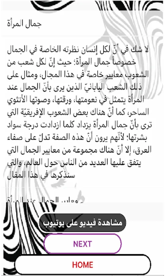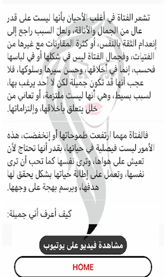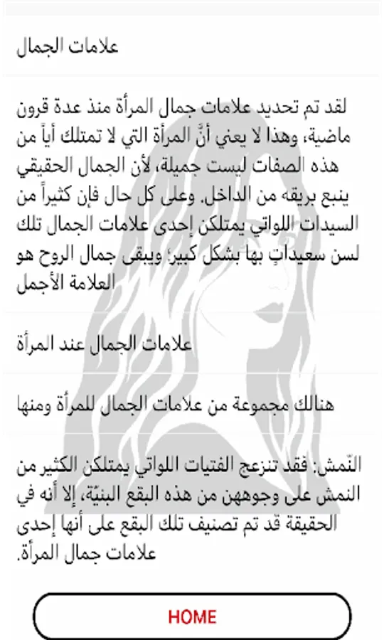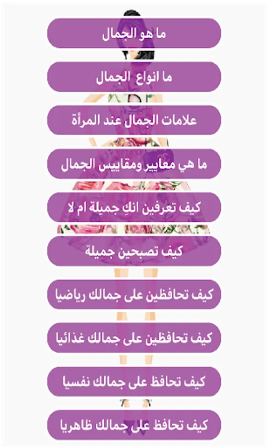 The application is based on defining women what is beauty and types of beauty and how women maintain their beauty in all aspects of psychological, physical and nutritional