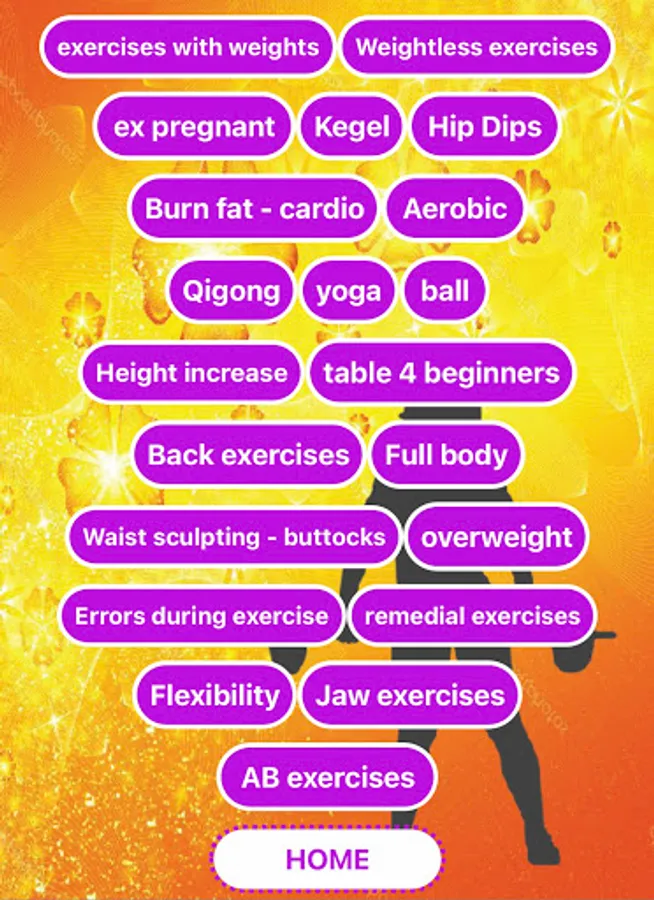 A sports application that displays a variety of different and diverse sports for both sexes - where the browser of the application can choose the sport that suits him and his inclinations, as the application reviews the information, reading and explaining the video. The application also reviews many exercises, including for men, for example, classic pressure, plank, leg exercises, and for women, exercises for pregnant women, fat burning exercises, and others.