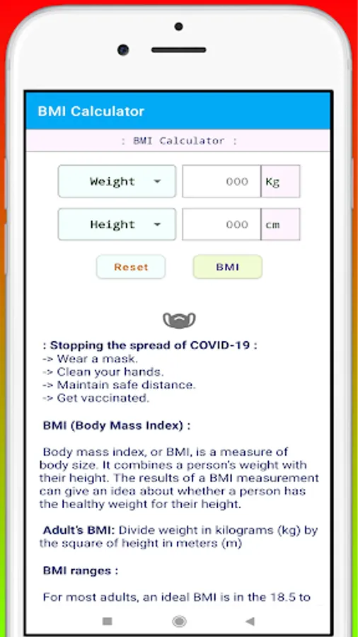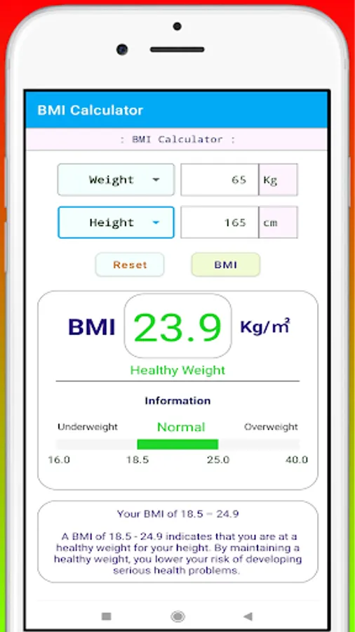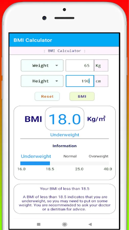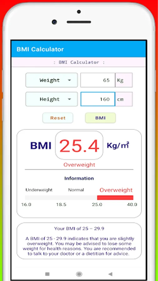 Calculate your Body Mass Index, BMI by entering your weight and height.