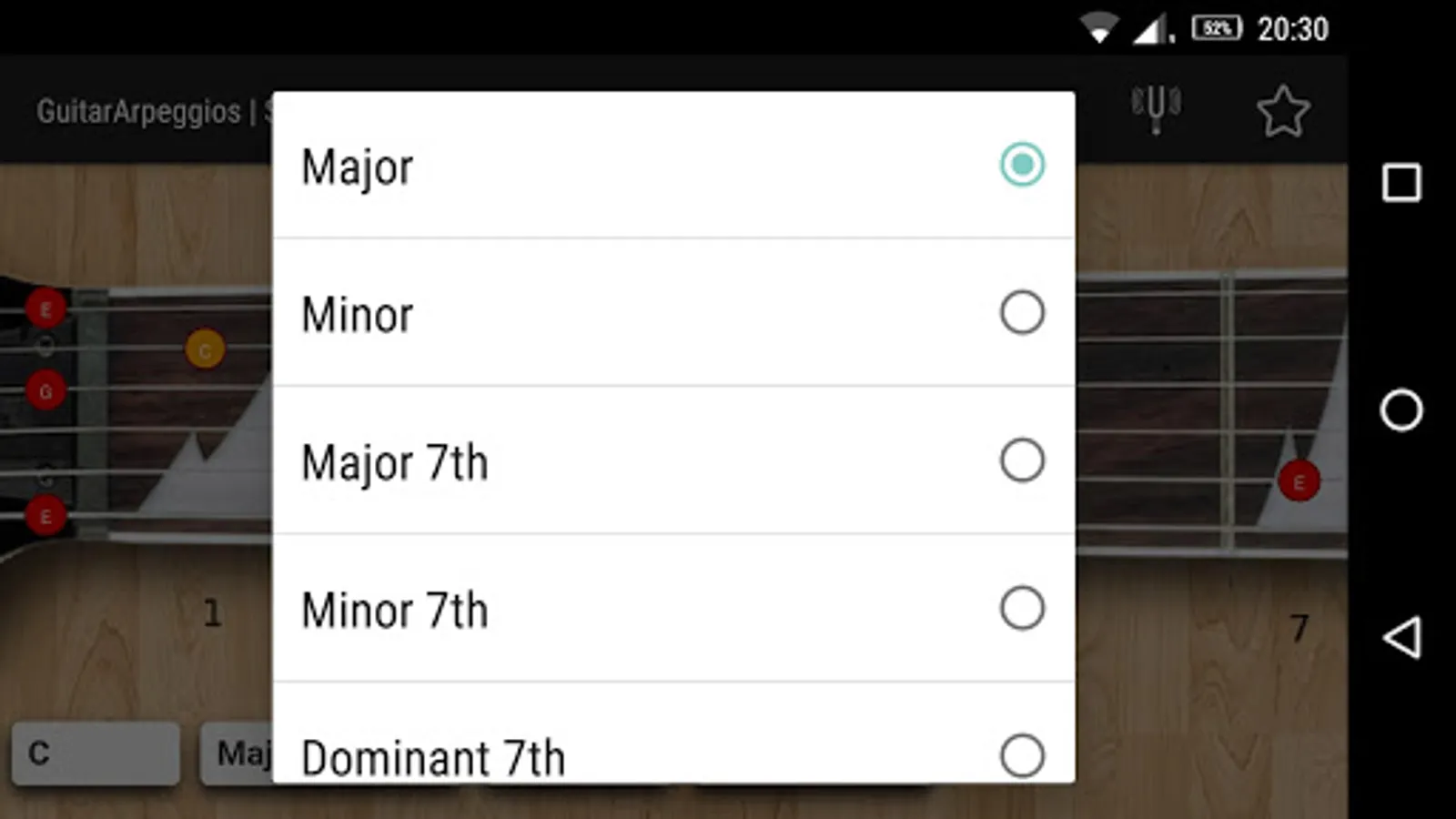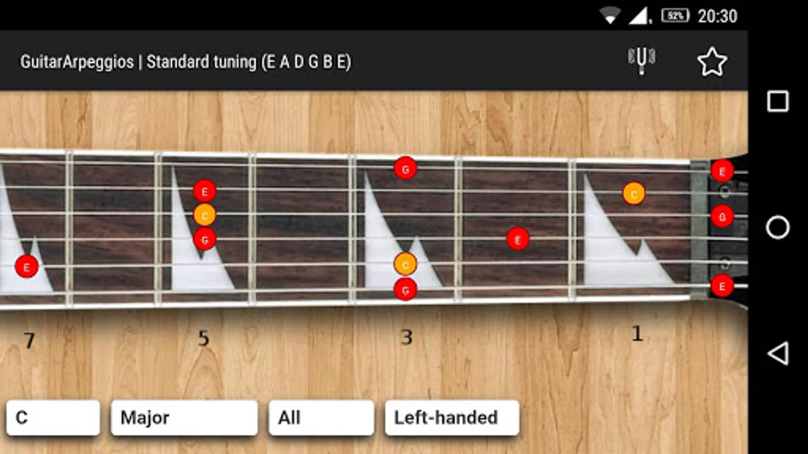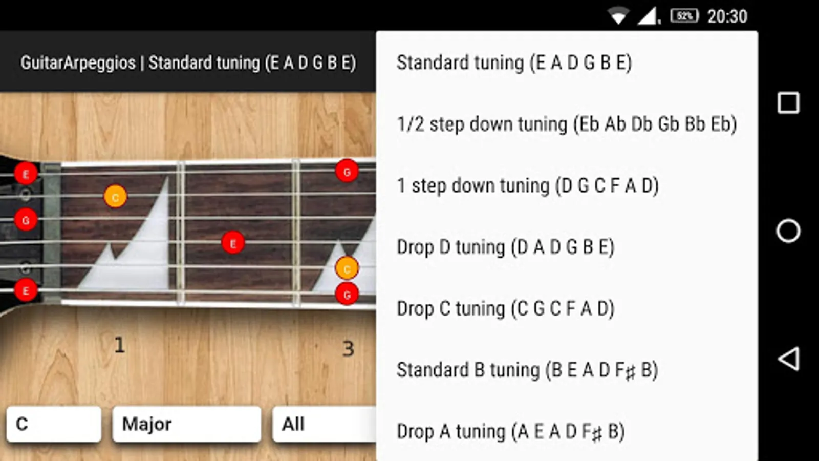 This is a free app to learn arpeggios on a guitar neck. Click on the note to play it. It has arpeggios for standard and some drop tunings.