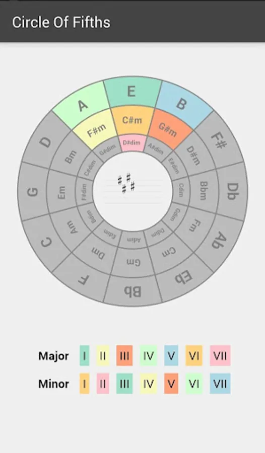 It`s a small lightweight application of Circle of Fifths. In music theory, the circle of fifths (or circle of fourths) is the relationship among the 12 tones of the chromatic scale, their corresponding key signatures, and the associated major and minor keys.