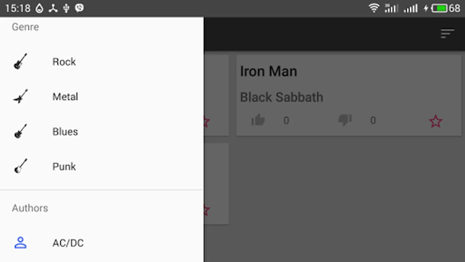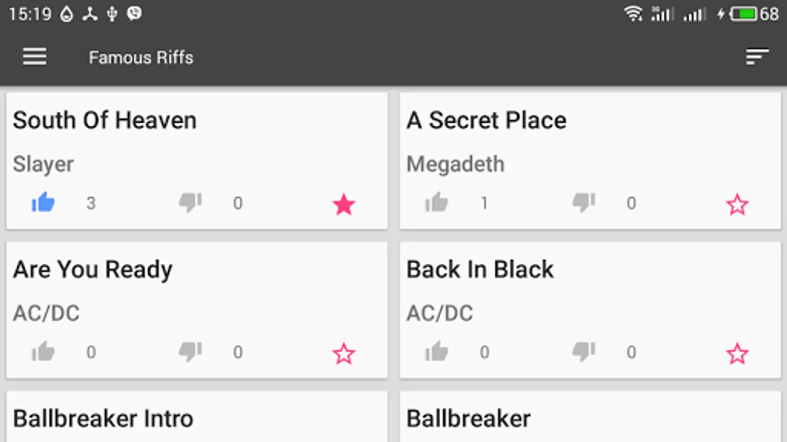 Each riff have likes and dislikes. You can add riffs to favourites. There are filters for artists and genres.