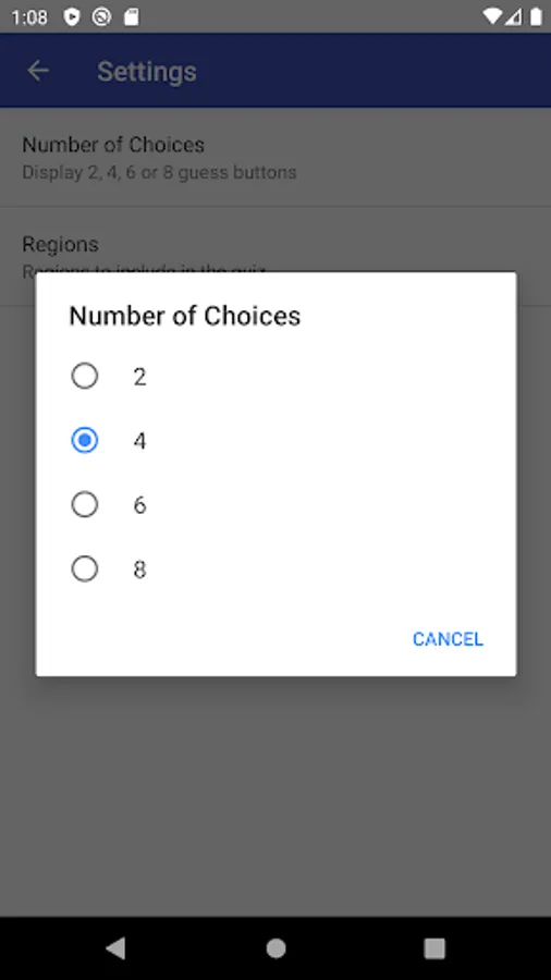 Multiple choices of quiz: 2, 4, 6, 8
