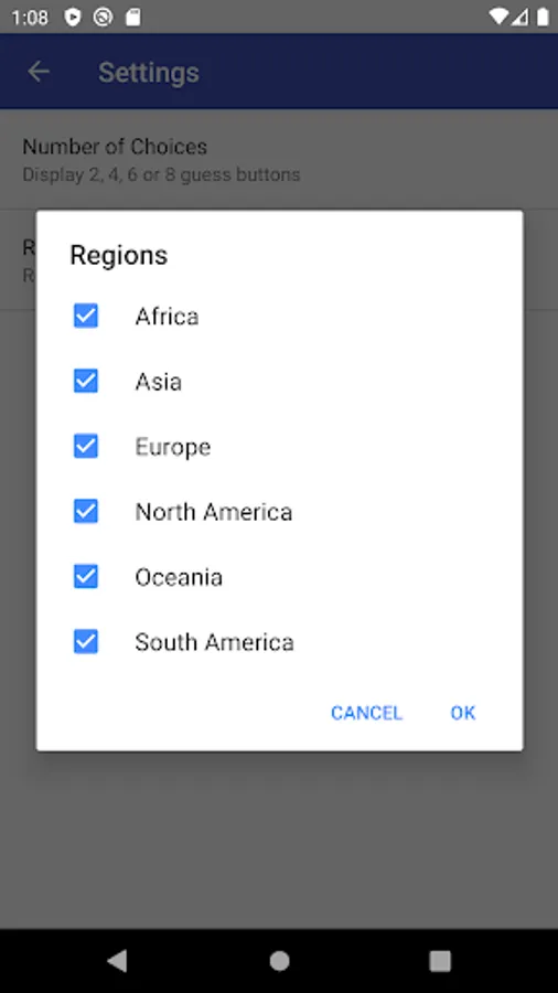 You can choose region: Africa, Asia, Europe, North America, Oceania,