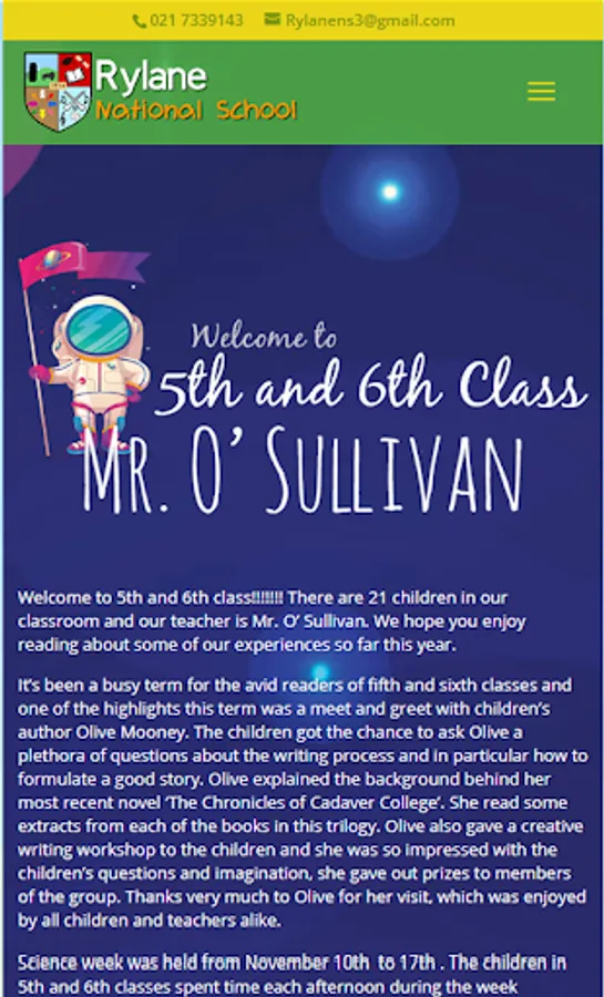 Rylane National School is a mainstream co-educational school with classes from Junior Infants to Sixth Class. Set in the picturesque townland of Mountrivers in Rylane, our primary school is beautifully nestled in the green countryside with the magnificent Muskery mountains in view. Rylane National School is a Catholic Primary School in the Parish of Aghabullogue.