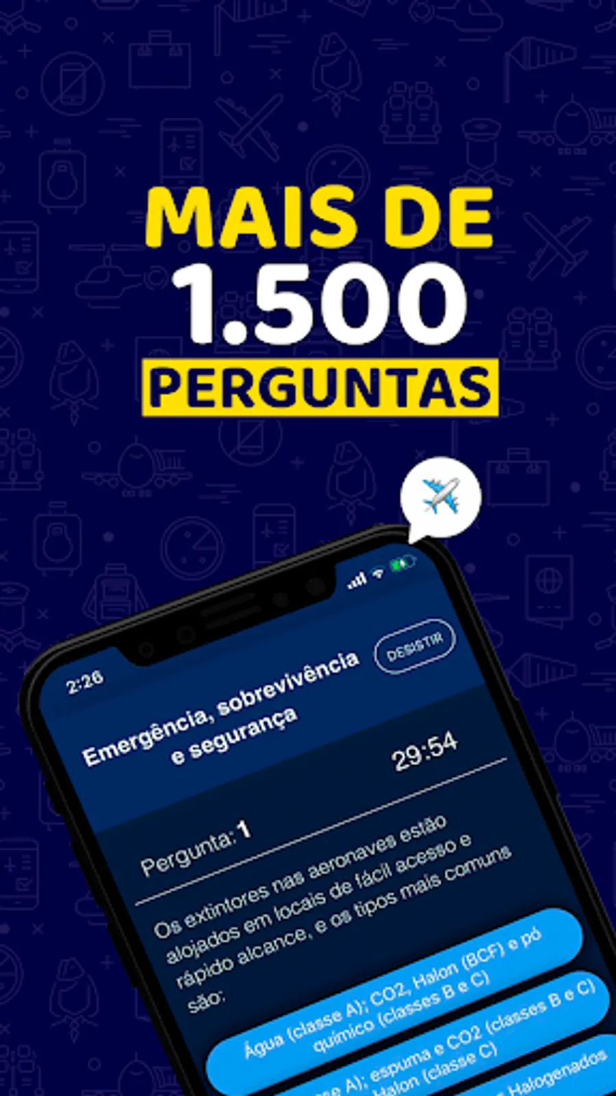 The Aeronaut prepares you to pass the ANAC board to earn your technical certificate for the flight attendant course. In the app you will have the chance to ask the same questions that fall on the newsstand.