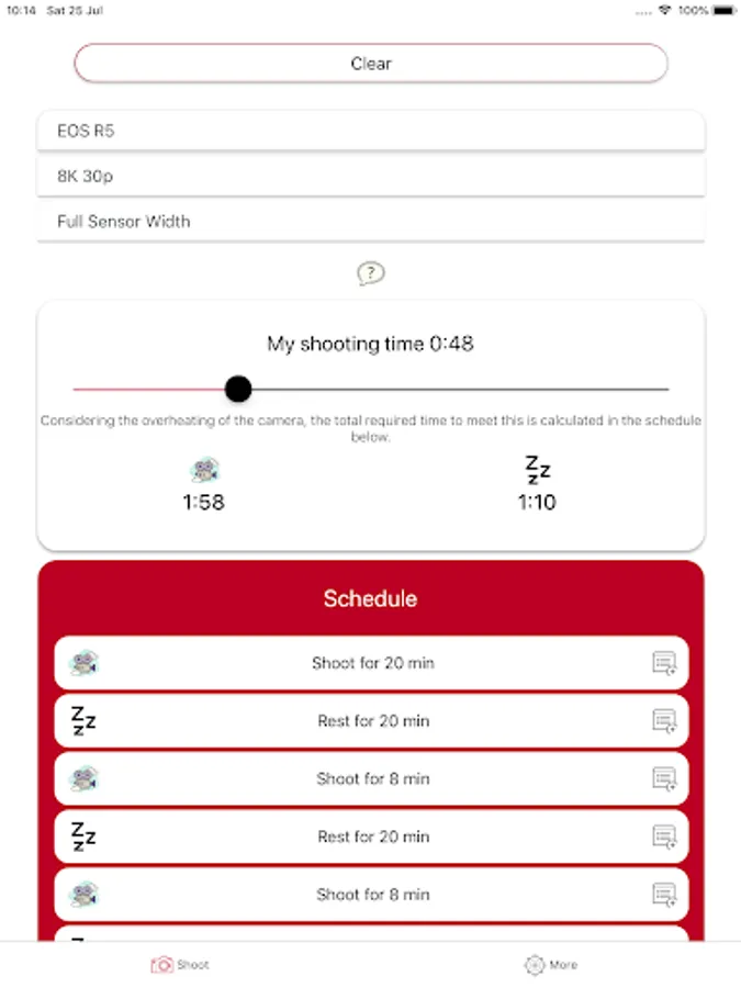 Taking into consideration the overheating element in the new Canon R5 R6, you can now create a schedule for your production. This schedule can be used to plan your necessary scene production and mode selections.