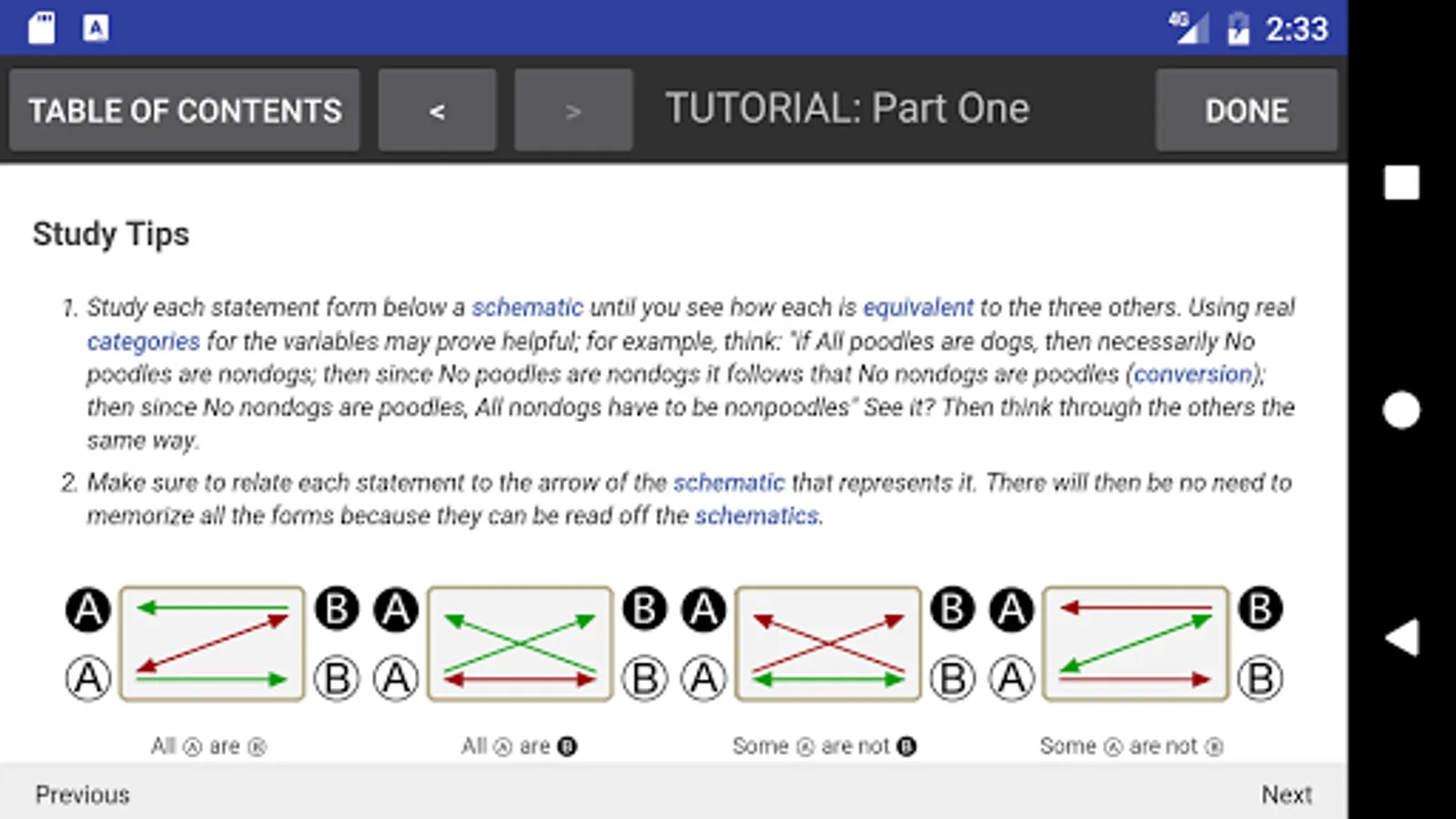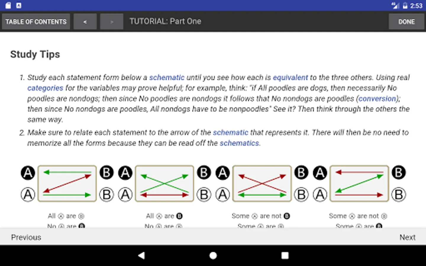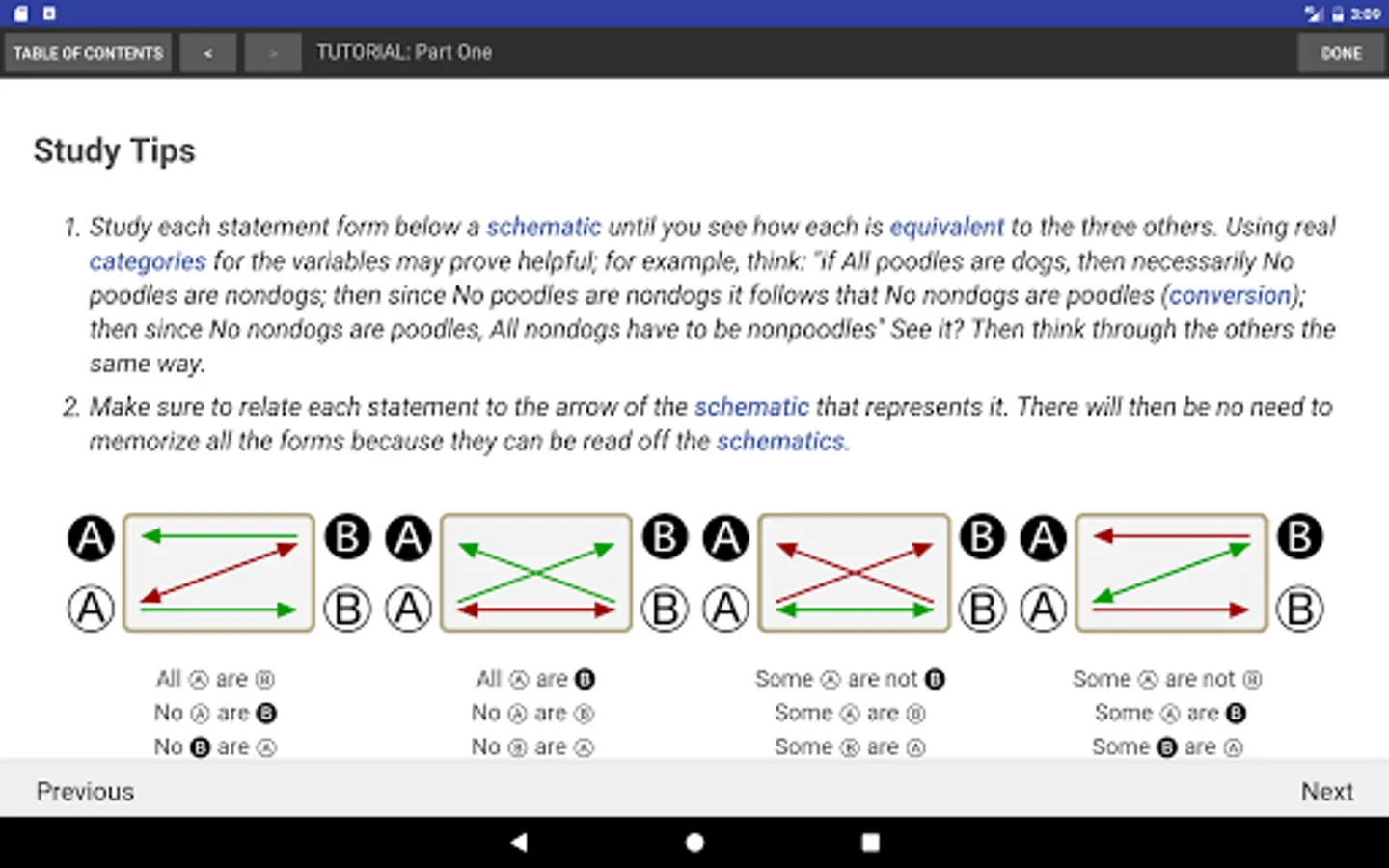 Instead of considering isolated statements as the components of arguments, such as major premise, minor premise, and conclusion, this new approach bundles each statement with its equivalents and each bundle is represented by its own “schematic” of arrows. The premise schematics can then be dropped in place along side each other where their juxtaposition displays whatever conclusion, if any, is entailed. The user only needs to learn how to select the correct premise schematics and how to follow the arrows for a conclusion.
