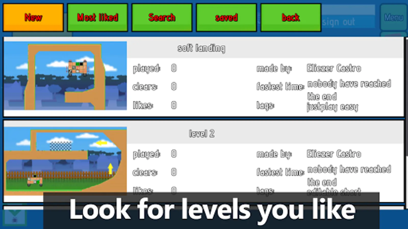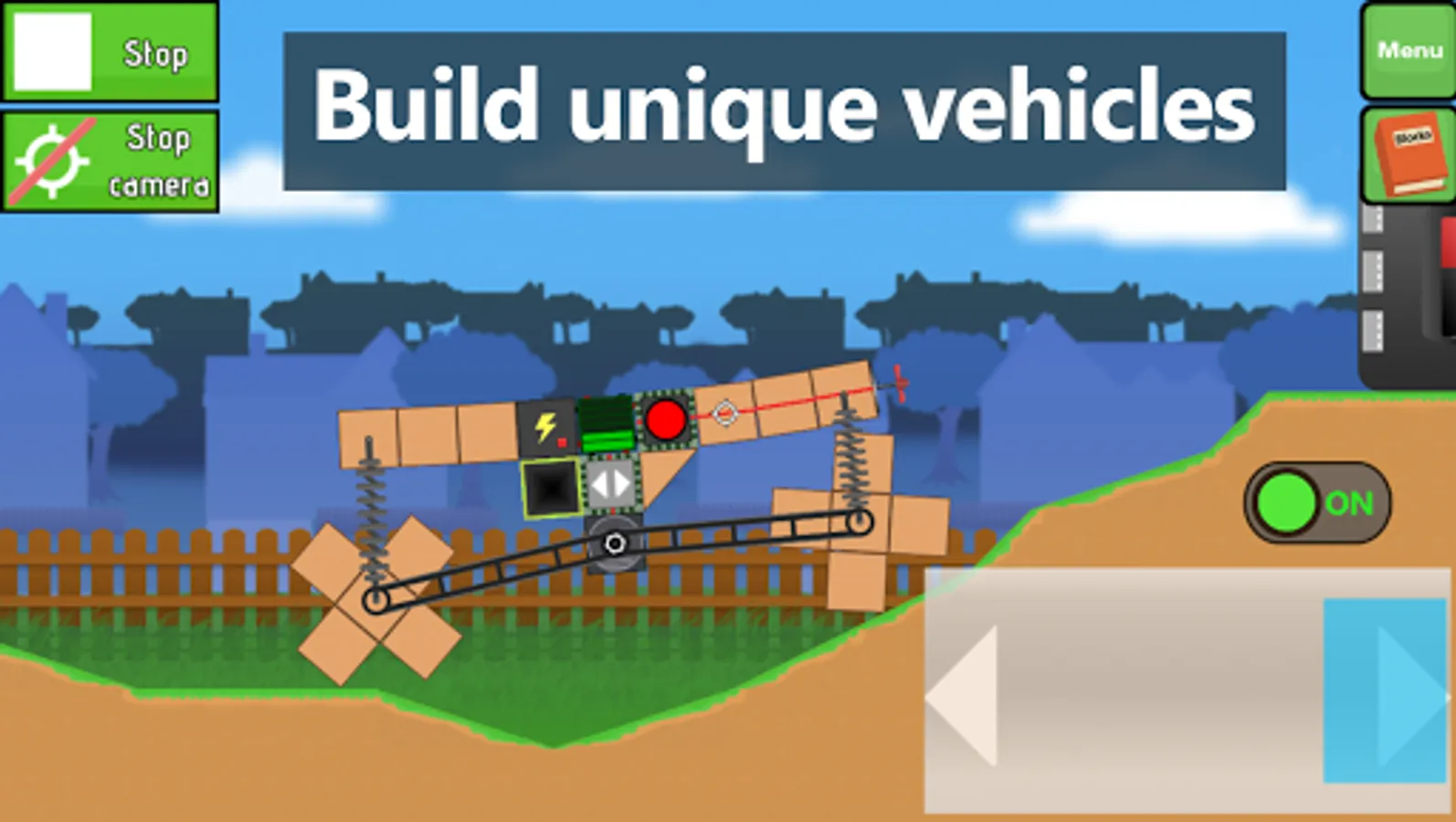 Enjoy this physics based game. Complete levels made by other users in creative ways. Build vehicles to reach the end zone, in the way there will be obstacles, you will need to build what is optimal with the resources given to you by the level maker, some are very kind and leave you a finished vehicle, so just play it... or is it a trap? Is not just about completing the level, you can go speed-runner mode and get your name on some levels' record time. There are many possibilities, so just give it a try it instead of reading this.