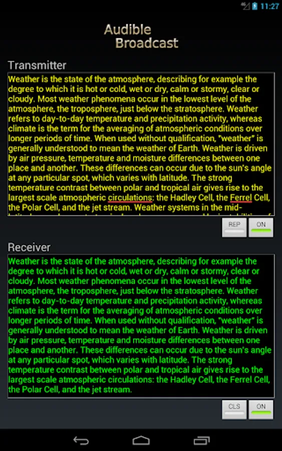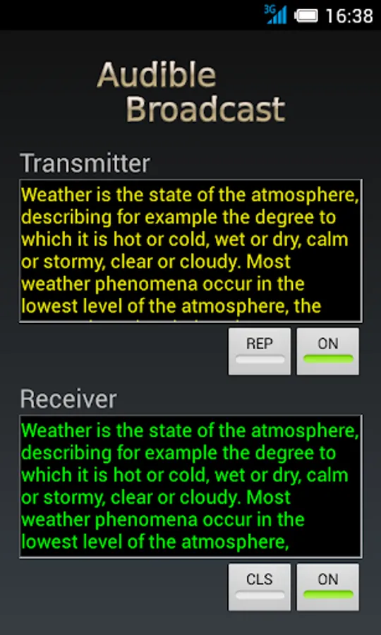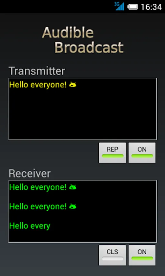 Audible Broadcast is a text messaging app that transmits messages between devices via sound using speaker and mic.