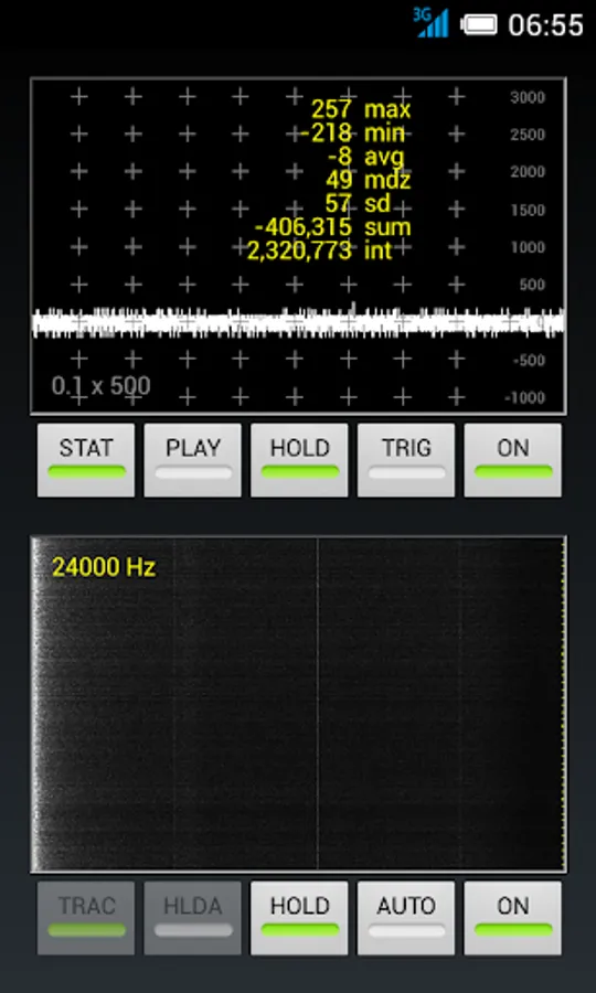 While in spectrum track mode the vertical ruler turns into scale with marks for seconds and tens of seconds.