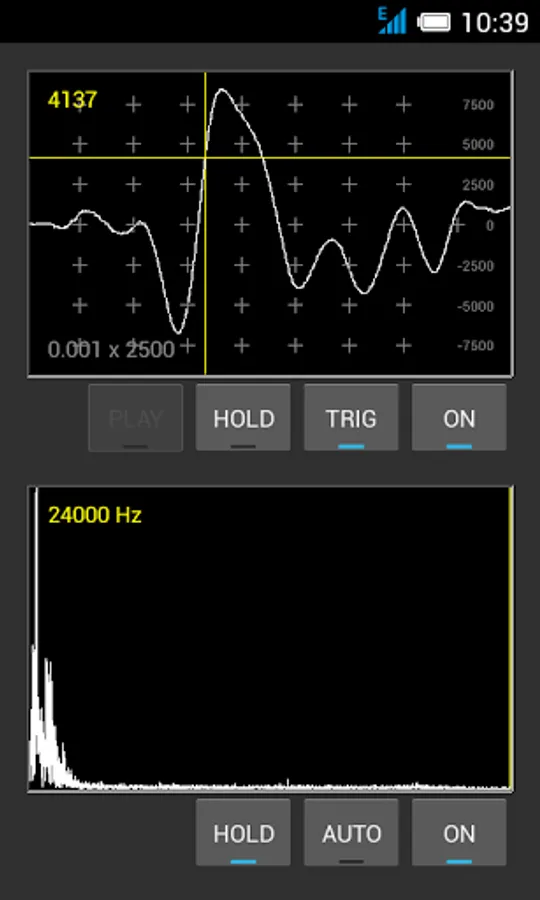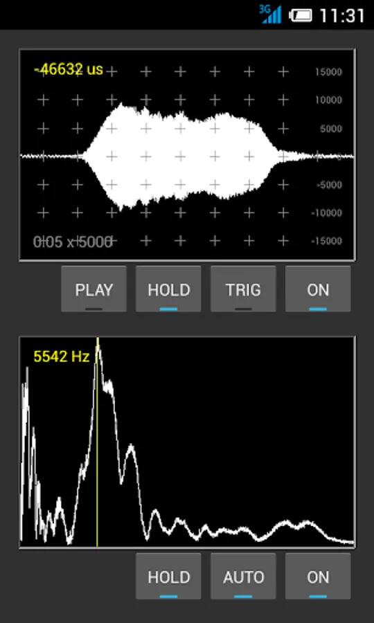 When triggered press HOLD and then release TRIG to study an interesting part of a waveform with navigation, zoom and playback.