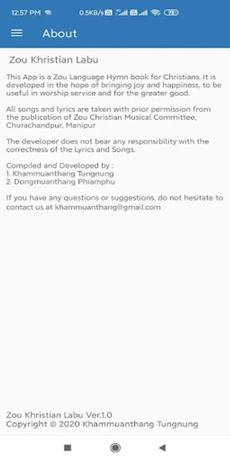 This App is a Zou Language Hymn book for Christians.It is developed in the hope of bringing joy and happiness, to be useful in worship service and for the greater good.