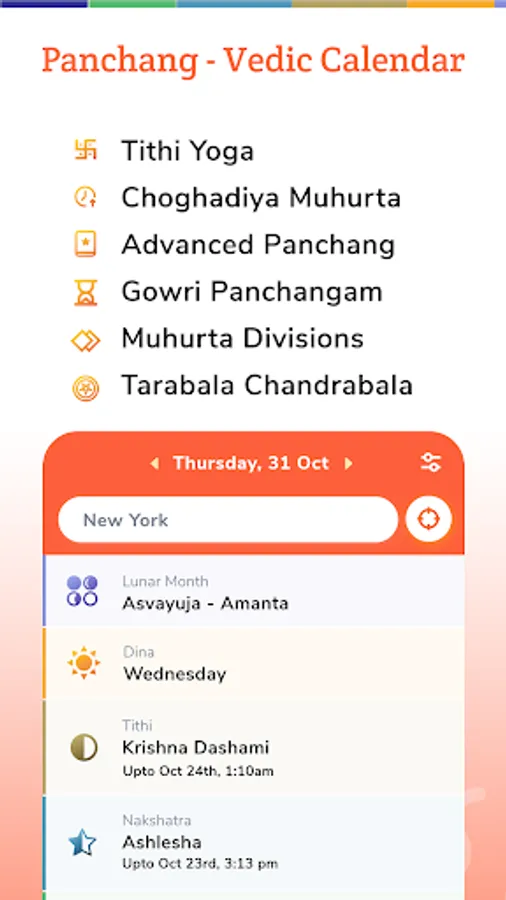 Panchang - Vedic Calendar app allows you to access the daily panchang based on where you are.