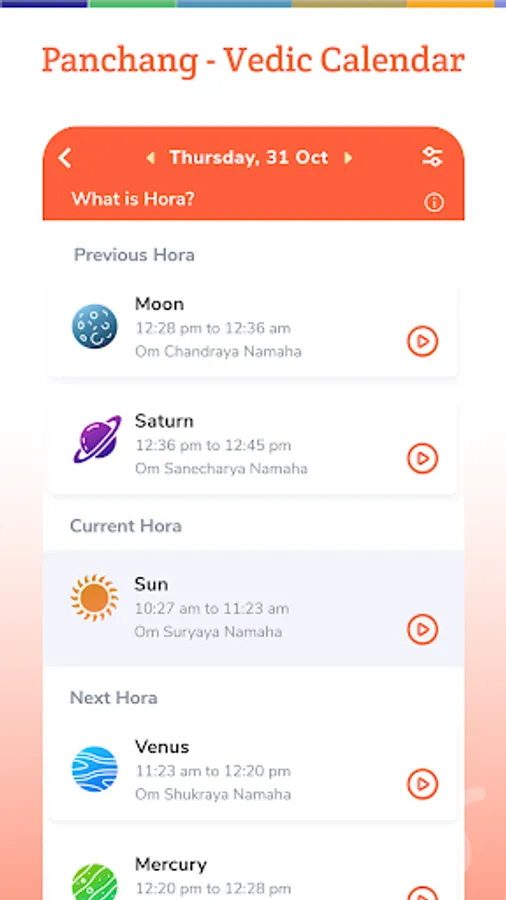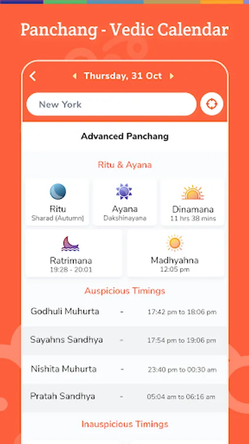 The calendar view also allows you to view the panchang for future dates so you can plan your day based on Vedic Astrology.