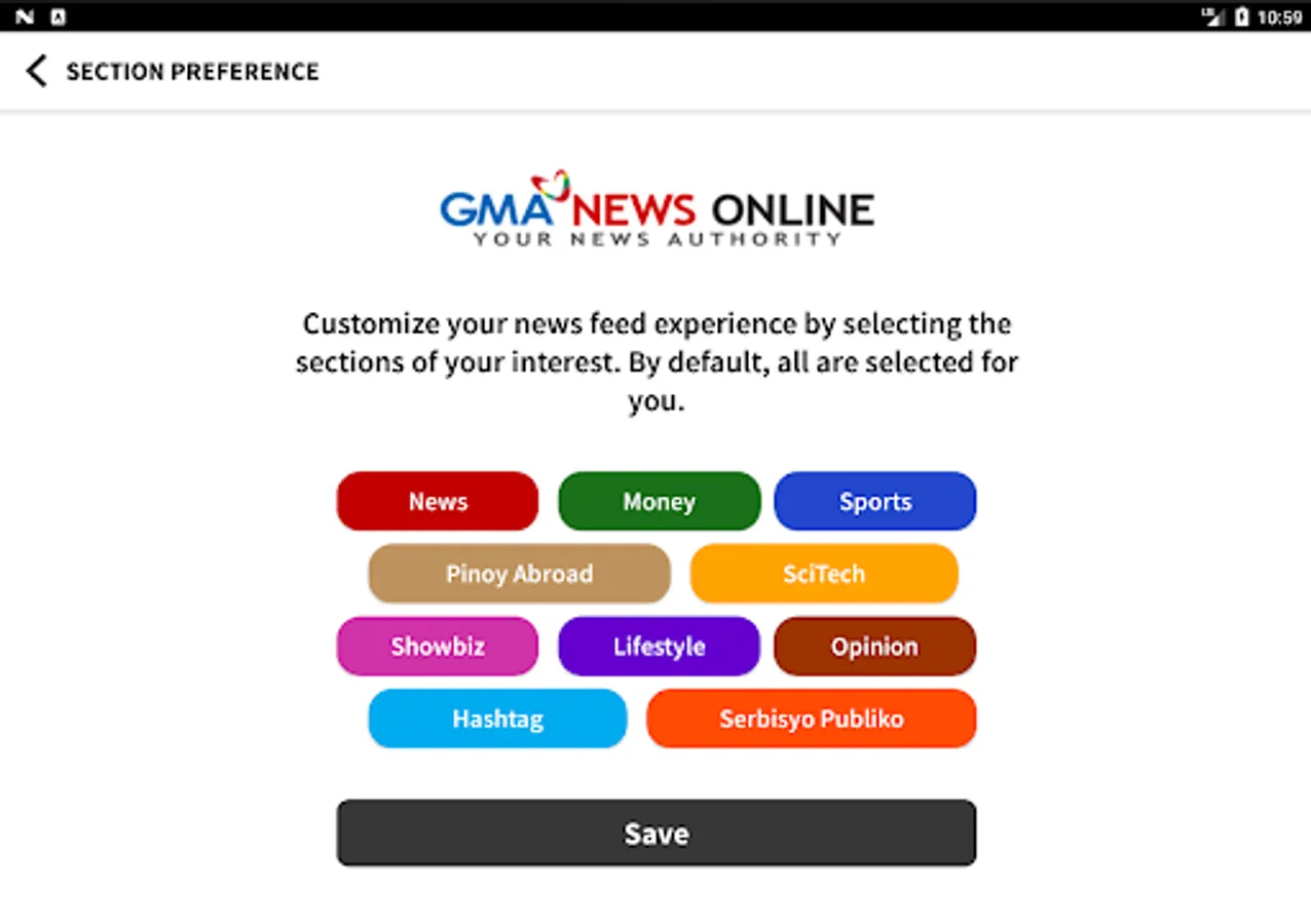Experience optimum browsing and get all the information you need at the palm of your hands. The action bar lets you go directly to your preferred section and manage customization settings. Customize your GMA News app by choosing your favorite sections and the number of articles that will be displayed.