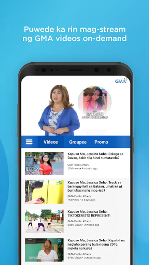 May karagdagang interactive features pa: mag-stream ng GMA videos, sumali sa promos, at makipag- chat with friends and get show updates on Groupee.