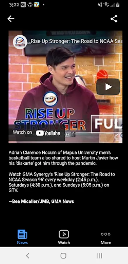 The NCAA Philippines App is the official app of the National College Athletics Association of the Philippines. Read about the latest news of your favorite NCAA Games. Watch video highlights of the latest NCAA games. Find the latest updates on your favorite team's rosters, and upcoming games.