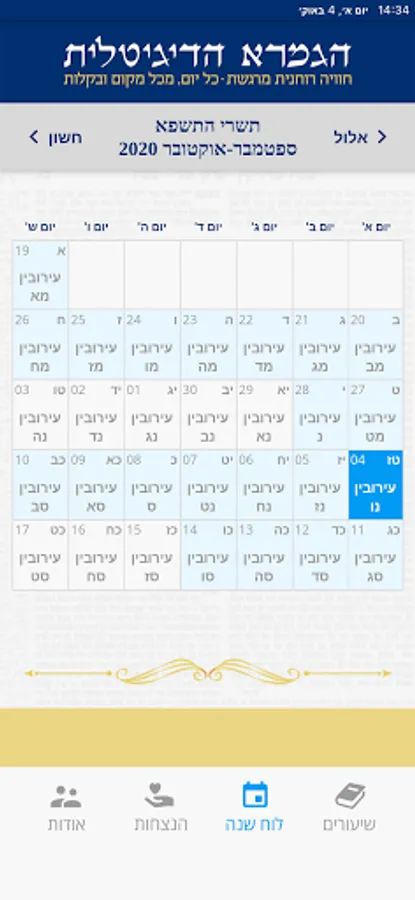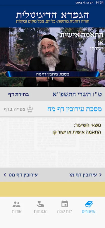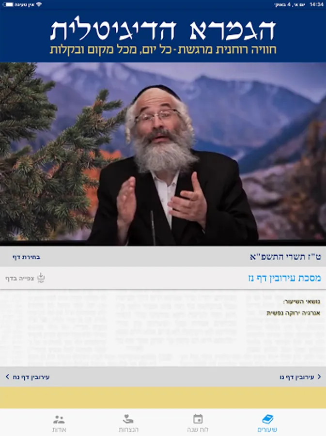 The site and the app are updated daily with the daily lesson corresponding to that day's page and touches on key issues from it through a fluid and short video lesson of up to 15 minutes - which allows you to follow the study order and get to know the main issues in the entire Shas according to the order.