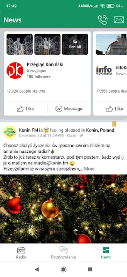 Konin FM 104.1 is the only radio station in the region whose program is entirely created in Konin. Local information, entertainment programs and contact with the listener are the hallmarks of our radio. We cover Konin, Golina, Koło, Słupca, Tuliszków and the surrounding area.