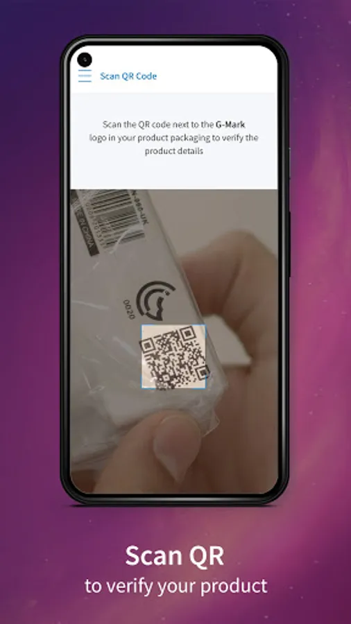 - Scan QR Code near the G-Mark in product or product packaging to verify the product and G-Mark conformity certificate details.