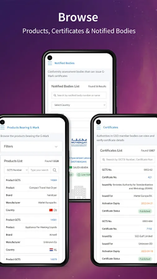 - Browse the Products Bearing G-Mark, Conformity Certificates & Notified Bodies.