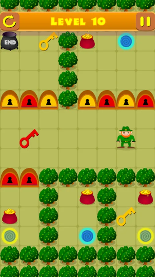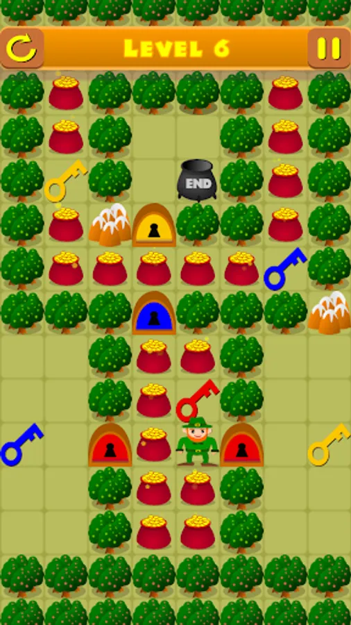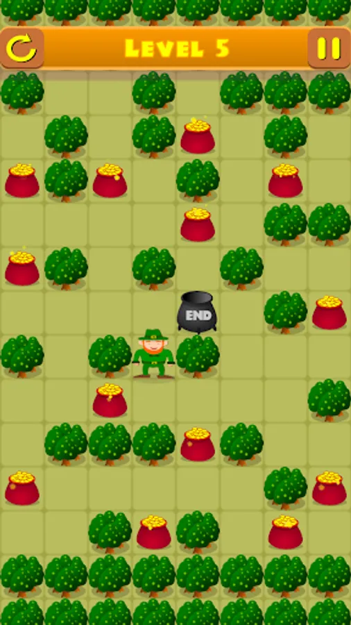 Help the leprechaun to collect all the gold pots in the forest. Collect all the pots in the forest to complete the level.