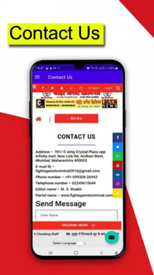 Fight Against Criminal is a broadsheet newspaper published in Mumbai, Maharashtra and circulated in Mumbai – Thane, Mira- Bhayandar, Palghar & Navi Mumbai. It is a Hindi, English, Marathi Newspaper and is Published daily website news update