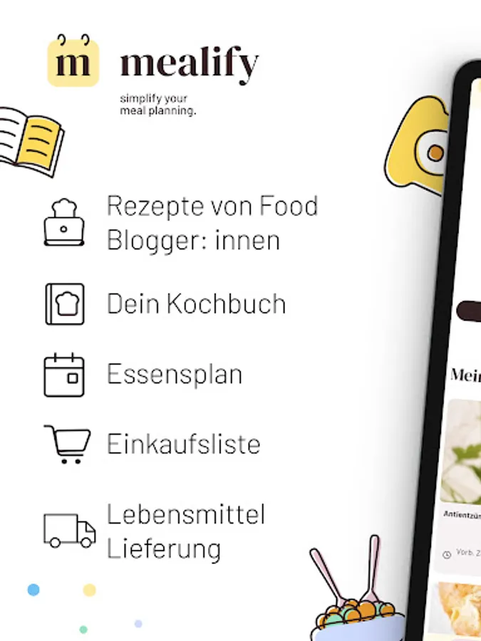 Diese enorm zeitfressenden Fragen gehören nun der Vergangenheit an, denn mealify reduziert deinen Aufwand für die wöchentliche Essensplanung auf wenige Minuten.
